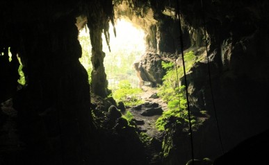 Docieramy do jaskini Niah. Już samo wejście uświadamia nam, jak wielka jest to pieczara. Wejście ma 60 m wysokości i 250 m szerokości, a cała jaskinia ciągnie się na długości kilku kilometrów. Czuć duszny smród o lekko ziołowej nucie. Magda zatyka sobie nos. To charakterystyczny zapach nietoperzowego guana.
