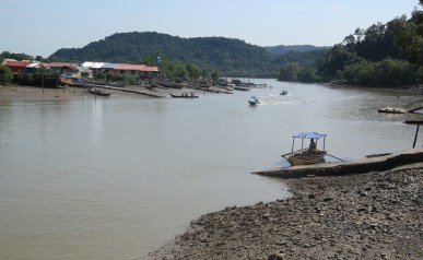 Przechodzimy przez bramę Parku Narodowego Niah i schodzimy na pomost, gdzie czeka na nas łódka, przewożąca na drugą stronę rzeki. Dobrze przygotowanym szlakiem pokonujemy kilka kilometrów lasu deszczowego.