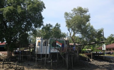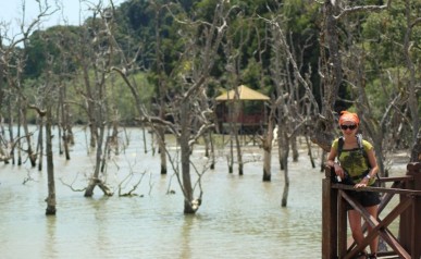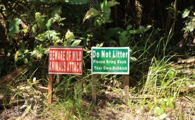 Docieramy na przystań, skąd odpływają łódki do parku. Można dostać się do niego wyłącznie rzeką. Wita nas tablica ostrzegawcza „uwaga, krokodyle, wchodzisz na własne ryzyko”, jednak najwyraźniej nie przemawia ona do większości przybyszów. Łódź wysadza nas na parkowej plaży. Ruszamy na szlak.