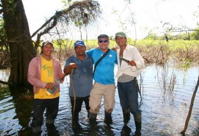 Niestety, długa wędrówka po bagnach, brodząc w wodzie po pas, nie zakończyła się sukcesem czyli złapaniem anakondy. Za to jeden z aligatorów złapał naszego przewodnika za nogę i grupa natychmiast się rozpierzchła...