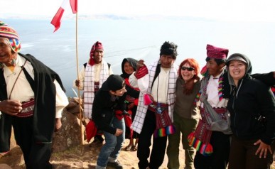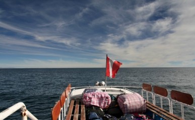 Jak jest dobrze to musi być też i źle. Ciągle trwa blokada granic Peru i dojazdu do Puno więc nie możemy wrócić:-( Trwają protesty, miejscami gwałtowne, miejscowej ludności, która nie chce by obcy kapitał eksploatował bogactwa Peru, niszcząc katastrofalnie środowisko. Na szczęście udało się załatwić łódź, która po wielu przygodach zabrała nas z granicy i właśnie pomykamy gładko, po wodach jeziora Titicaca, na Wyspę Taquile. Cały dzień na łodzi, w tak pięknych okolicznościach przyrody, ma niewątpliwe swój nieodparty urok. Błękit widzę, widzę błękit nad głową i pod nogami. Zawieszeni w czasie i przestrzeni trwamy...