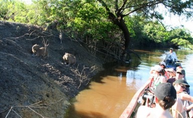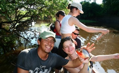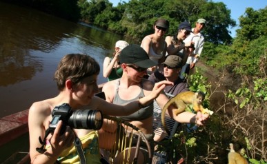 Potem polecieliśmy do selvy, gdzie było jak w bajce. Wspaniała pogoda pozwoliła nam wykąpać się w rzece z aligatorami i kajmanami. Różowe delfiny przejawiały ochotę do zabawy i podpływały do nas prosząc o głaskanie. Chociaż w mętnej wodzie trudno było odróżnić kajmana od delfina, a i piranie gromadami wyskakiwały nad powierzchnię wody, pokazując nam jasno kto tu rządzi. Obejrzeliśmy udany wschód słońca na pampie, wysłuchaliśmy koncertu dżungli o świcie i o zmroku, głaskaliśmy małpki i leżeliśmy w hamakach. Udało nam się również złowić kilka dużych piranii, które wypuściliśmy do wody.