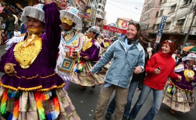 Bolesny był powrót do rzeczywistości czyli przelot do La Paz i powrót do zimna i braku tlenu. Lecz tym razem La Paz przygotowało nam fantastyczną atrakcję w postaci największej fiesty tego miasta czyli El Gran Poder. Musieliśmy zostać aby zobaczyć 62 zespoły i tysiące tancerzy przemierzających ulice miasta w kolorowych, bogatych strojach. Piękne, długonogie cholitas chętnie pozowały do zdjęć ukazując swe wdzięki.