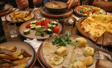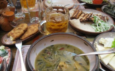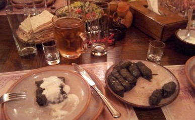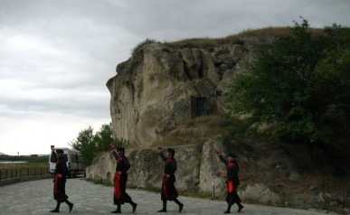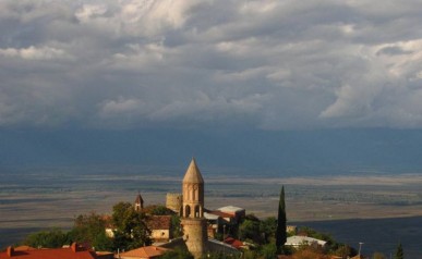 Kachetia – czyli: Poznajemy Kobę, Jedną nogą w Azerbejdżanie i Gdzie kupić dobre wino? Mówi się, że Gruzja to wino. A najlepsze wina pochodzą z Kachetii. Na zwiedzianie tego regionu przeznaczyliśmy 2 dni. Pierwszego, zapoznaliśmy się z Kobą – naszym kierowcą (w dzień kierowca a niekiedy i tamada oraz organizator wielu ciekawych zabaw). Ruszając do Kachetii nie można nie odwiedzić skalnego zespołu klasztornego Dawid Garedża. Część tego kompleksu leży po stronie Azerbejdżanu. Niemałym zaskoczeniem było dla nas spotkanie azerskich wojskowych w drodze do pieczar ze średniowiecznymi malowidłami. Nocowaliśmy w Signagi. Tu Królem Wina jest Pan Misza. Mimo, iż dotarliśmy do niego późnym wieczorem, nie odprawił nas z kwitkiem. Zostaliśmy poprowadzeni do piwniczki a tam mogliśmy wybierać w pysznych domowych winach. Wybór padł na Saperawi – i był to strzał w dziesiątkę.
