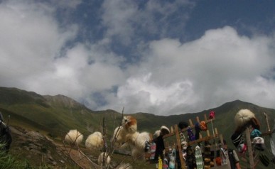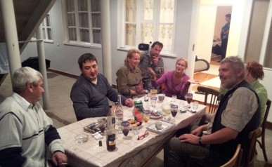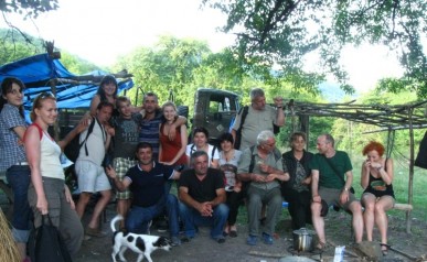 Pszawetia – czyli: Bardzo Ciekawy Dzień. Po intensywnym zwiedzaniu przyjechaliśmy na wieś. Zwieńczeniem dnia była biesiada na tarasie (i smakowanie tutejszych specjałów - jabłkowej wódki czy sera pleśniowego dambali chaczo) Towarzyszyli nam Basia i Piotrek – zaprzyjaźniona po drodze para z Warszawy. Nazajutrz wyruszyliśmy na obchody święta Mariamoba. Droga była wyjątkowa gdyż Pszawetia to region górski. Po ciekawych perypetiach na trasie w końcu dotarliśmy do celu i szybko przekonaliśmy się co znaczy słynna gruzińska gościnność. Były śpiewy i tańce, toasty i przednia zabawa!