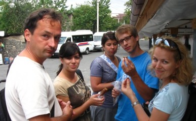 Sewan – czyli: Aszot, Szaszłyk i Rusałki. Piknik nad Sewanem. Aszot – prywatnie wzięty lekarz, zastępczo - kierowca, na jeden dzień zamienił się w Szefa Kuchni! Dowiedzieliśmy się wszystkiego co wiedzieć trzeba, by prawidłowo przyrządzić szaszłyk. Dzień zakończyły “poważne” rozmowy o Pięknych Sewańskich Rusałkach! (znaleźli się nawet chętni na wyprawę w poszukiwaniu tychże).