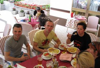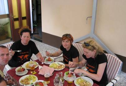 integracja, wspólna kolacja i kładziemy się spać aby nabrać sił przed tym co nas czeka rano.