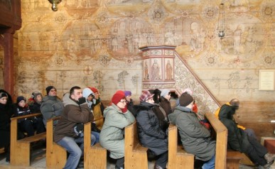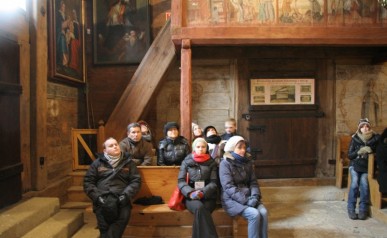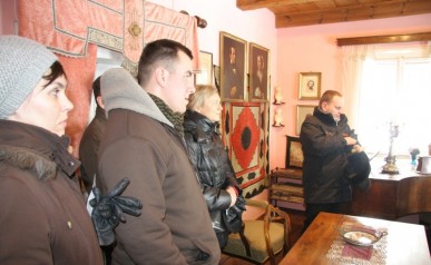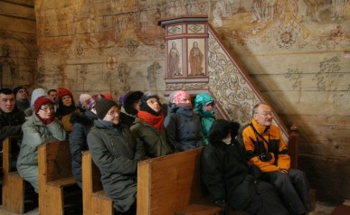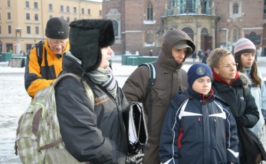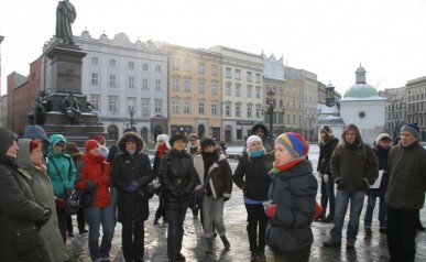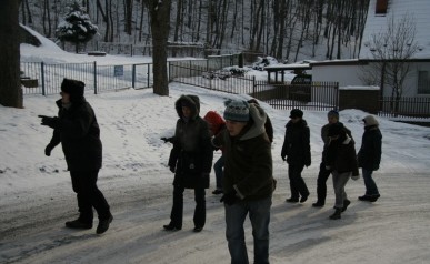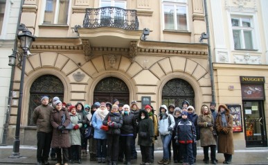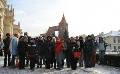 Zwiedzanie rozpoczęliśmy na Rynku Głównymw Krakowie gdzie w towarzystwie Pani Agnieszki Podymy, przewodnika miejskiego po Krakowie odwiedziliśmy Galerię Malarstwa w Sukiennicach, naszą uwagę skupiły przede wszystkim dwa monumentalne dzieła malarza Hołd Pruski oraz Kościuszko pod Racławicami. Następnie udaliśmy się ulicą Floriańską, przy której wznosi się Dom Jana Matejki na Plac Matejki, gdzie spod Pomnika Grunwaldzkiego i Akademii Sztuk Pięknych wyruszyliśmy w dalszą część podróży autokarem. Po drodze minęliśmy Nową Hutę w której znajduję się Dworek Jana Matejki oraz legendarny Kopiec Wandy, na szczycie którego stoi postument z orłem zaprojektowany przez J. Matejkę, następnie odwiedziliśmy Nowy Wiśnicz, malownicze miasteczko na Pogórzu Wiśnickim, w którym oprócz ciekawej zabudowy, renesansowego zamku naszą uwagę skupił przed wszystkim dworek Koryznówka, w którym mieści się Muzeum Pamiątek po malarzu, który tam właśnie często przebywał. Mimo mrozu humory dopisywały. Dalsza część trasy zawiodła nas do Lipnicy Murowanej słynnej z 3 postaci świętych stamtąd się wywodzących, gdzie każdego roku w niedzielę palmową na Rynku pod figurą Św. Szymona z Lipnicy odbywa się osławiony Konkurs Palm Wielkanocnych. Zwiedziliśmy drewniany kościółek Św. Leonarda wpisany na Listę Światowego Dziedzictwa UNESCO. Ukoronowaniem imprezy była wizyta w Karczmie pod Kamieniem Brodzińskiego, w której po trudach dnia mogliśmy się posilić i rozgrzać.